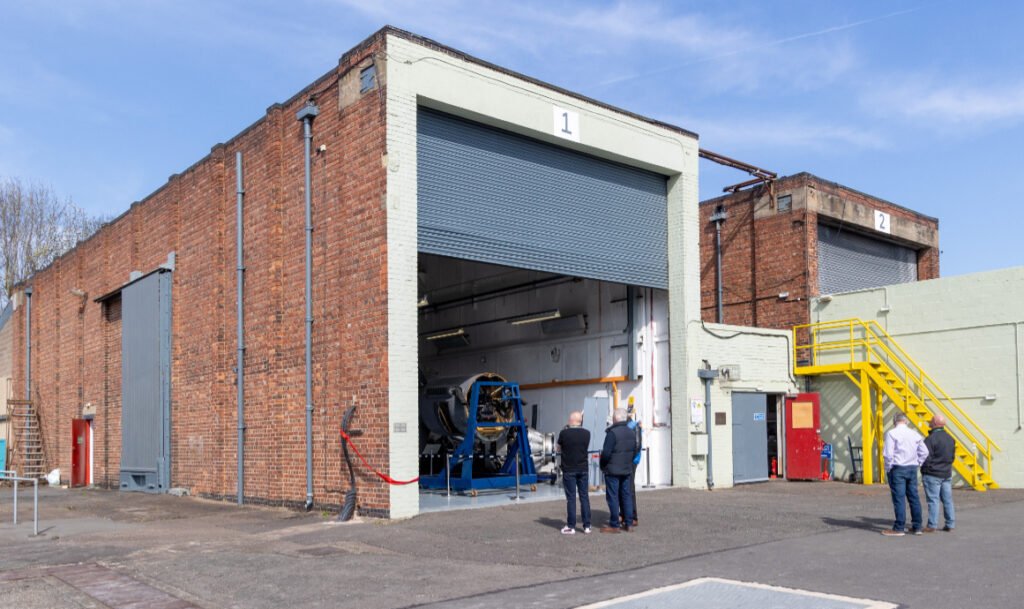 The museum is housed in the Hucknall Wing Hanger, a rare 20th century Grade 2 listed industrial building, originally constructed in 1944. It was built to provide dedicated ground test facilities for ongoing Merlin and Griffon engine development. The building consists of two test hangars, originally with an aircraft wing section suspended in each. Both hangars are joined by a central blockhouse which provided test control facilities. Engines would be mounted on the articulating wing section for testing in an identical manner to a service aircraft installation, enabling a full range of simulated engine stress tests to be carried out. Visitors can see exhibits relating to both the flight testing that took place at the largely secret Rolls-Royce Hucknall Flight Test Establishment from 1934 to 1971, and the equally important specialist ground testing that continued at Hucknall right up until the early 2000’s.